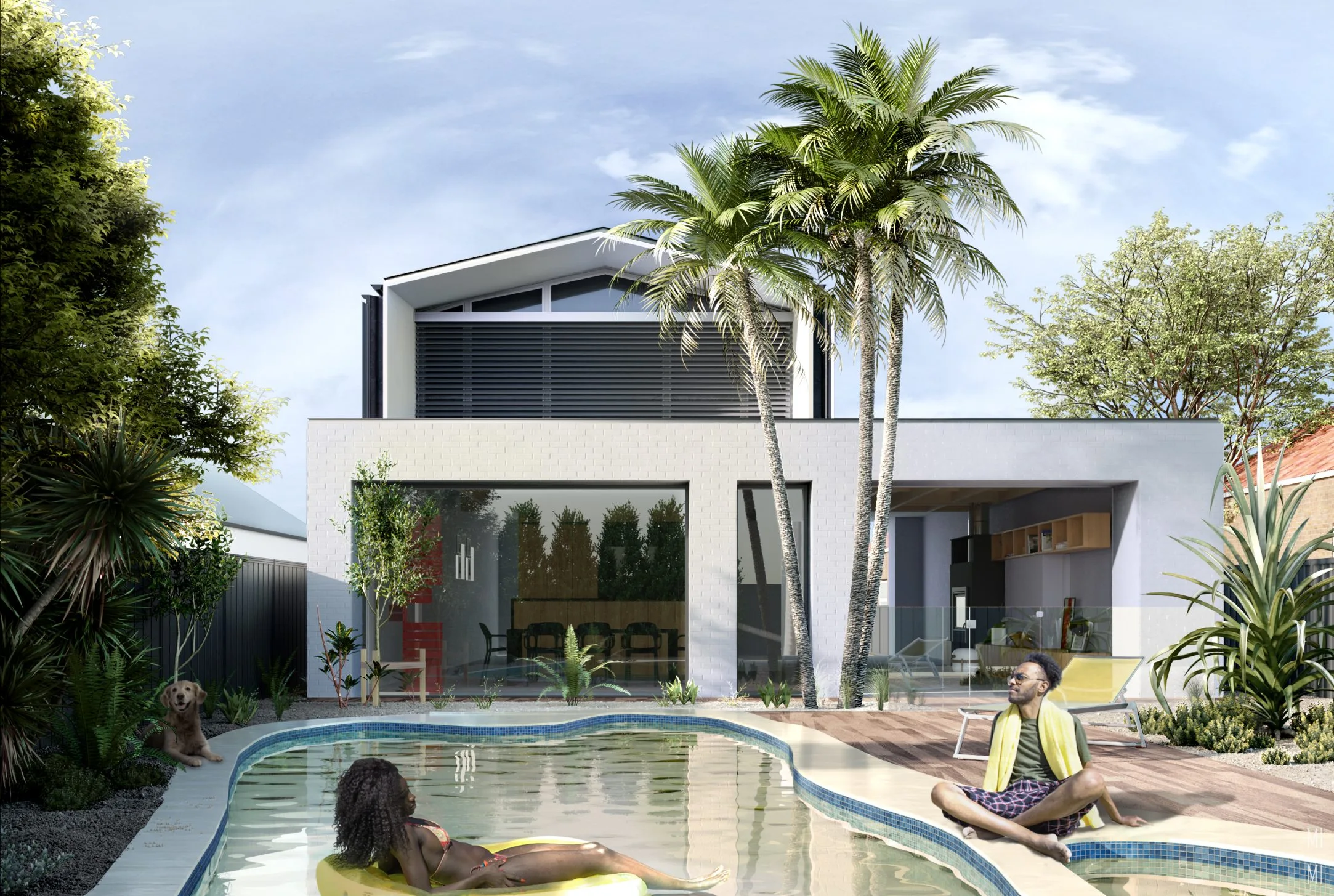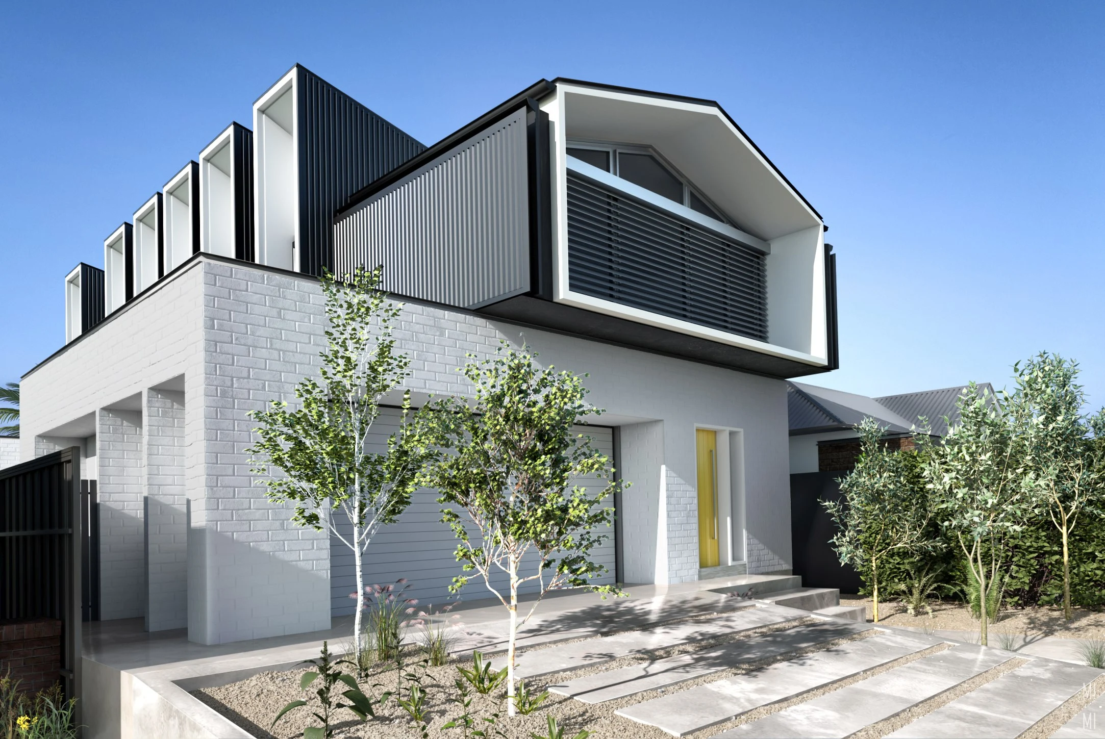 Ten wyjątkowy budynek znajduje się na przedmieściach Sydney. Od razu zachwyciło nas jego oryginalne rozwiązanie architektoniczne. Bazując na dostępnych zdjęciach, postanowiliśmy stworzyć własną wizualizację tego projektu.