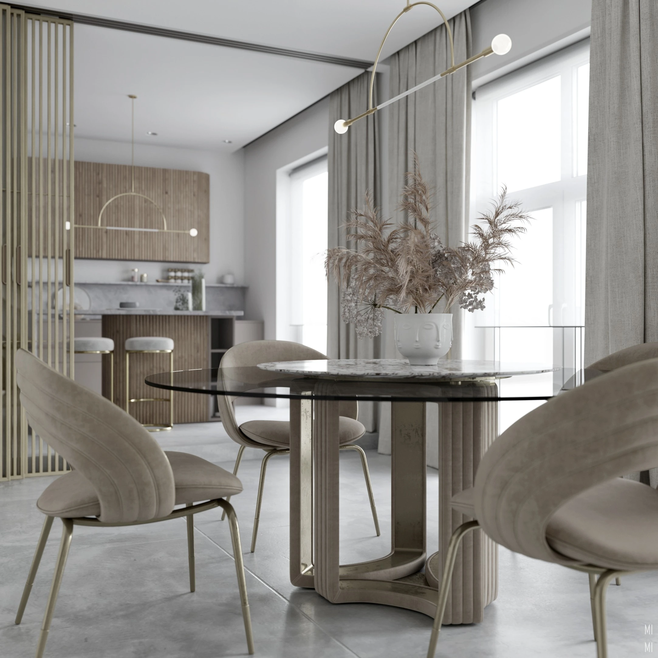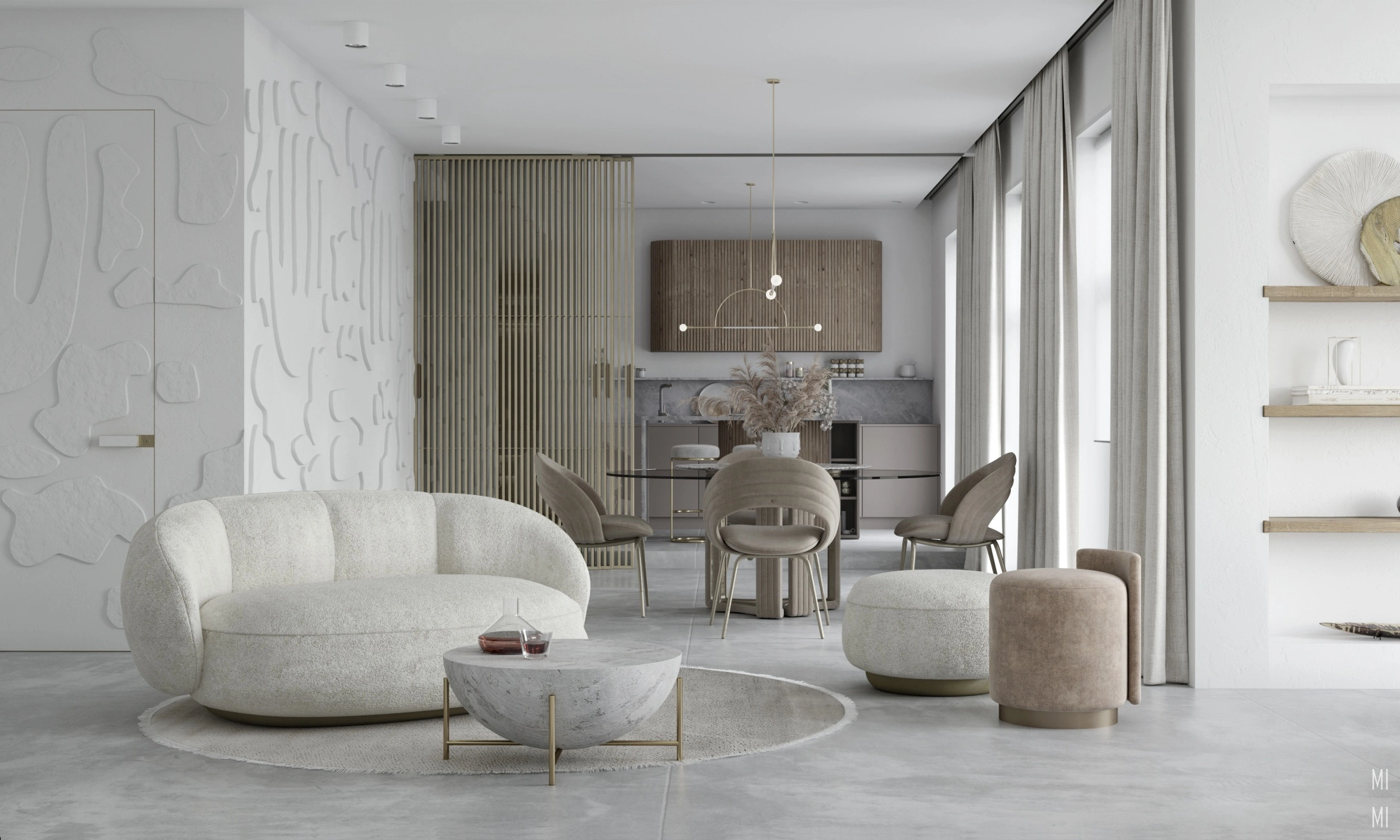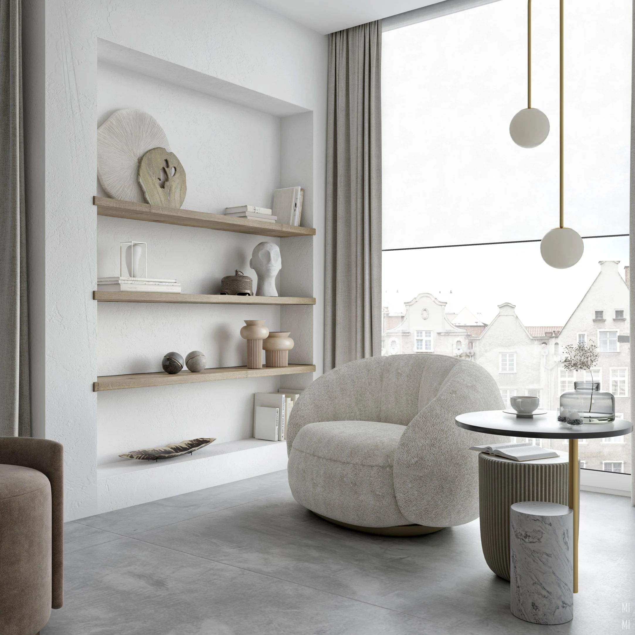 Projekt został stworzony dla młodej stylistki. Opracowaliśmy koncepcję wnętrza, a następnie przygotowaliśmy wizualizację 3D dla klientki. Głównym celem było stworzenie spokojnej i inspirującej przestrzeni, która odpowiada najnowszym trendom współczesnego designu.
